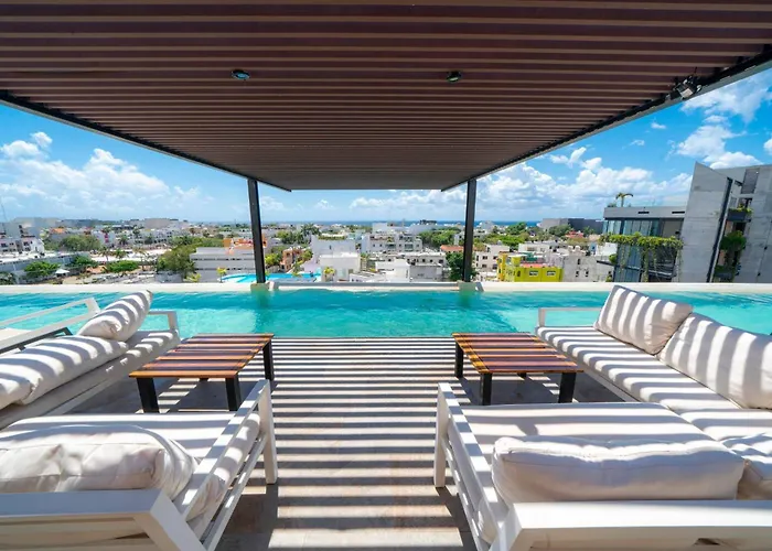 Offering a private swimming pool, Rooftop With Ocean Views - 2 Bedrooms With Pool - At Arenis Condos 309 Playa del Carmen is located just a 5-minute walk from the Xcaret Park. This spacious 98 m² apartment with a solarium is in the vicinity of the Quinta Avenida.